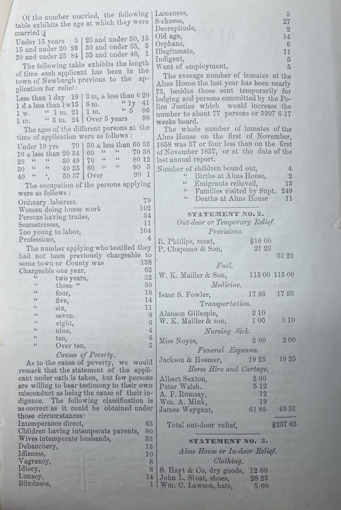 As the city grew, so did those who needed care. Eventually the Alms House patients would be moved to other facilities, such as the City Infirmary, which could better meet individual needs, and by 1970 the Alms House, with many of its records still inside, was destroyed as a result of urban renewal, making the transcriptions and annual reports available at our library, as well as digital surrogates from the City Historian’s office on New York Heritage (Newburgh Municipal Records | New York Heritage) some of the few glimpses researchers have into the activities of one of our city’s earliest charitable organizations.