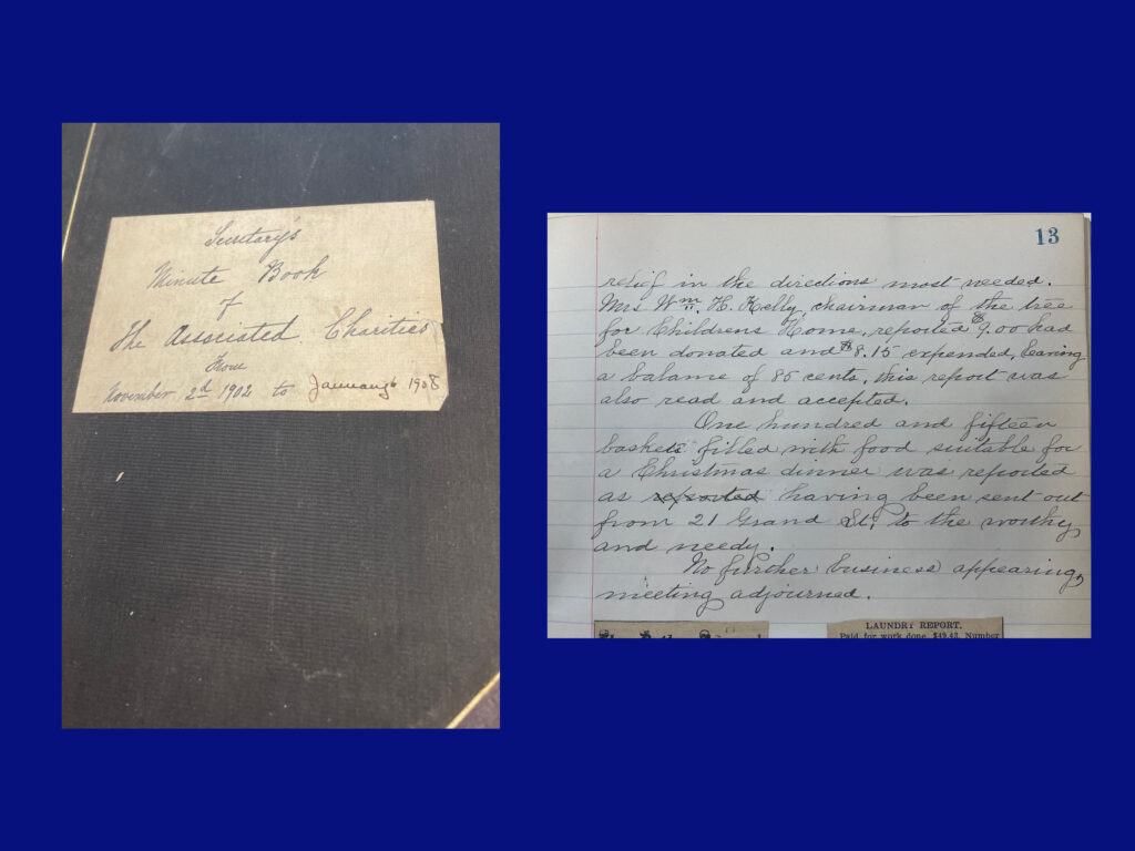 Cover and inset from the Secretary’s Minute Book of the Associated Charities