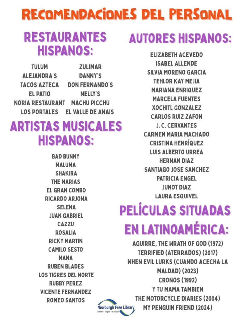 Hispanic Heritage Month / Programas del mes de la Herencia Hispanica
